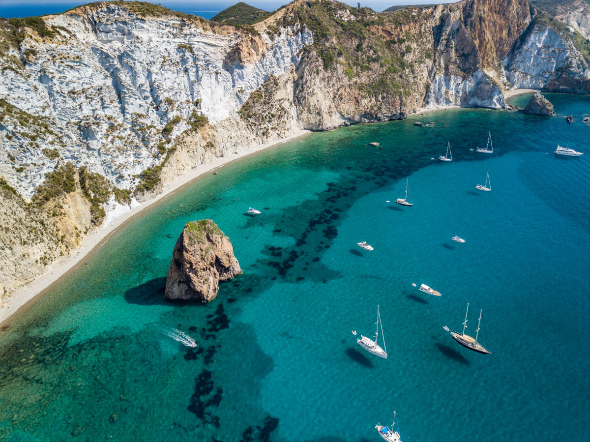a Ponza si possono fare delle soste in alcune delle calette più famose, come Cala Fonte, Cala Gaetano o la spiaggia di Frontone, come Chiaia di Luna o la Spiaggia di Santa Maria. Palmarola e’ un'isola più piccola e meno frequentata rispetto a Ponza. Qui ci sono alcune delle spiagge più belle dell'arcipelago, come Cala del Porto, Cala Brigantina e Cala Francese.